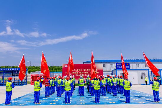 會上,沈剛毅宣讀《成立上海電建“雙百”突擊隊的決定》。6支突擊隊代表接過鮮紅隊旗,漕涇二期項目突擊隊代表表態:“我們將以突擊隊精神攻堅克難,確保實現目標任務!”