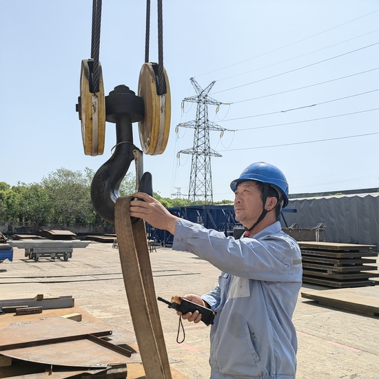 每天清晨,黃其國總是第一個到達施工現場,開始一天吊運前的檢查、準備工作,動作不快,很小心、很仔細、很安靜。起重吊運無小事,他慢慢游走于車間、外場,眼睛里透露出的是專注、是嚴謹、是執著,仔細查看著每個部件、每臺設備,手不時地摸摸這里、碰碰那兒,似乎在感受著每一件產品的勃勃生命力。有時候,他還會停下來,低著頭,像是在思考什么。這樣的人、機“對話”,每天都在悄悄地發生著。